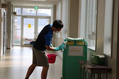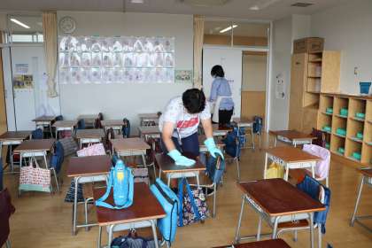 子どもたちが下校した後、清掃・消毒、来週の準備の時間です。