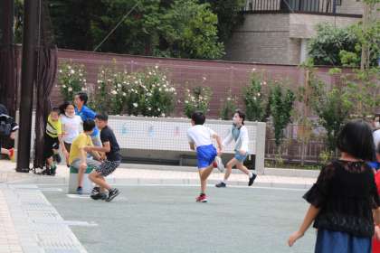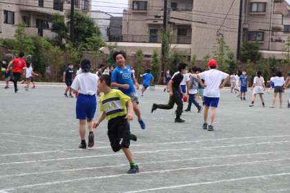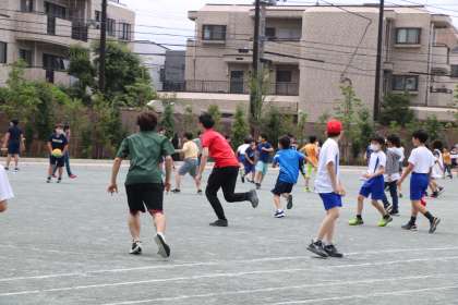ドロケイで助けを求める子。目立たないように鬼から隠れている子。先生を必死で追いかける子。みんな一生懸命全力で遊んでいます。