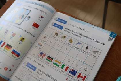 英語で自己紹介ができるように、練習中の6年生です。