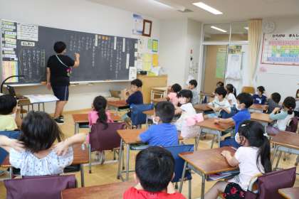 先日クラスみんなが仲良くなるために1回目の学級会がありました。いす取りゲームをすることが決まり、みんなで楽しくできました。しかしその振り返りの時、「いす取りゲームは楽しかったけれど、自分が座れなかった後は応援しかすることがなくて残念だった」「最後まで楽しく遊びたかった」などの意見が出ました。それなら!「来週もう一回遊ぼう!ロング朝遊びで遊ぶ内容を、その振り返りをもとにみんなで決めよう」…ということになっての、今日の学級会でした。最初なので、まだ先生が司会をやっていますが、そのうち1年生もできるようになります。