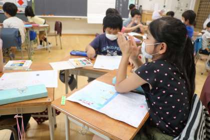 向かい合わせの席は、限られた時間の中での活動です。互いのお話のよかったところを伝え合います。思わず拍手も出るくらい、言葉で伝えられた子はとてもうれしそうです。