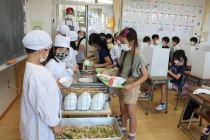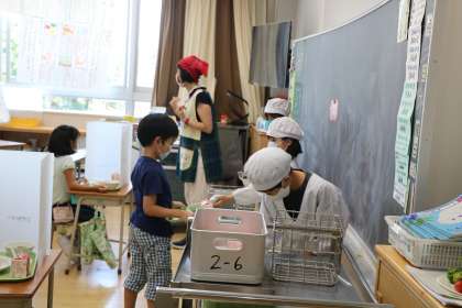 どのクラスもとても落ち着いて給食の準備をしていました。2年生!立派です。