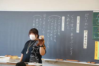 そして、学級会をしているクラスが今日もありました。先生がかわいい小道具を使い、工夫しながら説明しているので、みんなも真剣に考えた自分の考えを、安心して発言しています。