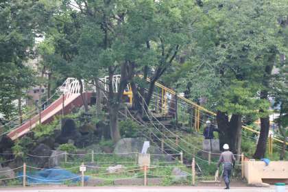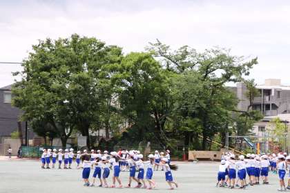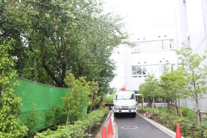 今日は山野の山や、校舎西側谷戸川沿いの植木の剪定に、植木屋さんが来てくださいました。山野の山は、あっという間に緑が生い茂り、遠くからすべり台の上が見えなくなってしまうくらいでした。写真は剪定前と後の様子です。
