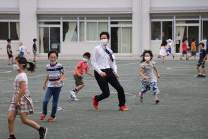 先生も一緒に朝から元気いっぱいです。前頭葉を活性化し学習効率をアップさせましょう!
