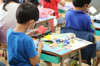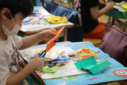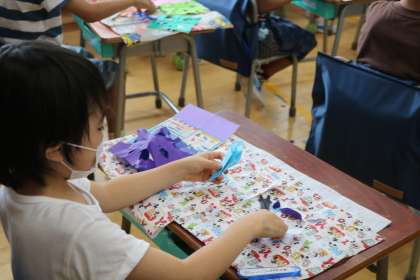 7/9 1年生図工「チョッキンパでかざろう」〜2