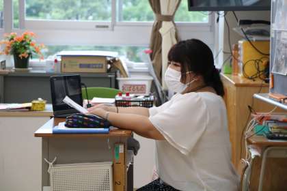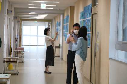 今日は1年生保護者会です。担任の机上にはzoom配信用のタブレットが置かれています。保護者会中廊下ではPTA本部役員の皆様が、トラブル対応のために待機したり、廊下掲示をライブ配信したりしてくださいます。ありがとうございます。