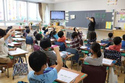 雨のスタートです。しかし授業が始まると、どの学年も、落ち着いて学習に取り組んでいます。