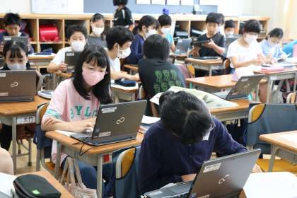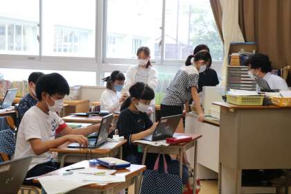 情報と情報の関連付けの仕方に着目し、文章を読んだり書き加えたりして、報告書を書き上げる学習です。情報を取ると言っても、様々な情報の取り方があります。インターネットから、文書から、直接インタビューをして…。6年生の熱心な態度から、インタビューをされる方もより熱心に回答をし、またそれ以上のお話もしたくなります。