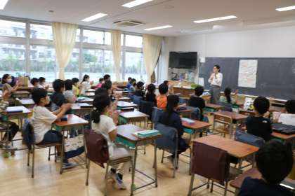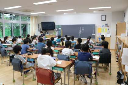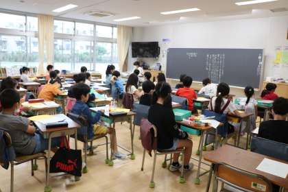 放送朝会中の3年生の様子です。静かに放送を聞き、1年生の言葉には「あ、○○君の弟じゃない?」などと言いながら、最後には温かい拍手をしていました。