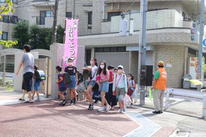 毎月0のつく日はおはようデーです。そして月曜日は砧町自治会の皆様がオレンジ色のベストと帽子姿で、朝の登校見守りに立ってくださっています。そして砧の町中では、砧町会の皆様が水色の帽子をかぶって見守りをしてくださっています。