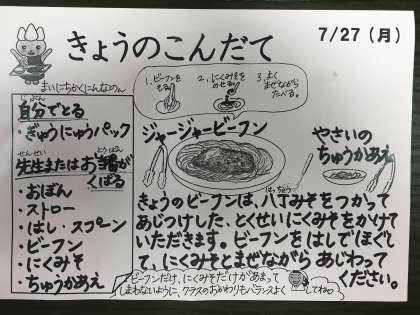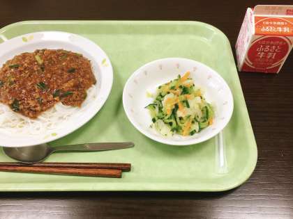 今日は、ジャージャービーフン、野菜の中華あえ、牛乳です。