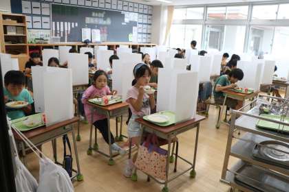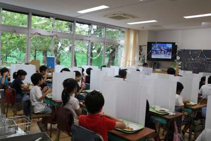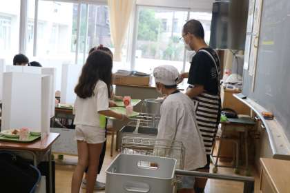 3年生の給食の様子です。協力して仕事をやるので、とても手際よくできるようになってきました。