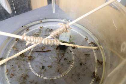 今日は、池の水をきれいにするため水中の生き物を避難させようと、網ですくうと、ヤゴがたくさんいました。早くも羽化しそうなヤゴもいます。