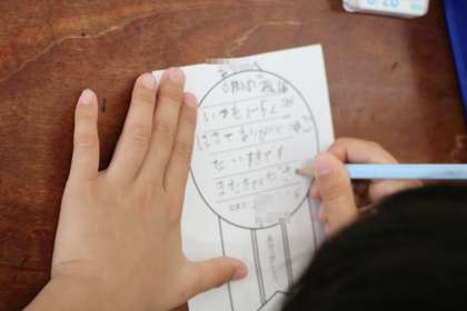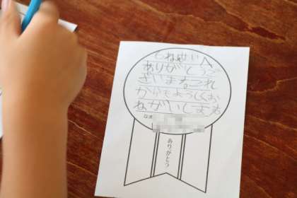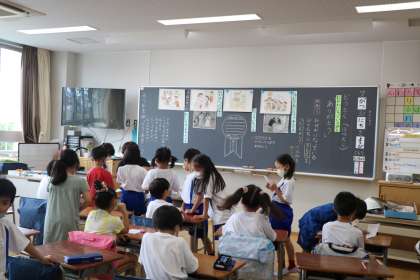 お世話になっている人に感謝するという「ありがとう」の学習です。最後に小さい感謝メダルを書きました。お母さんに、友達に、6年生のお兄さんお姉さんに。それぞれ書いているメッセージが温かいです。