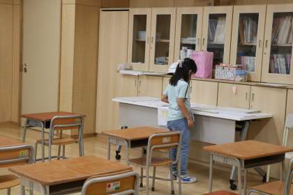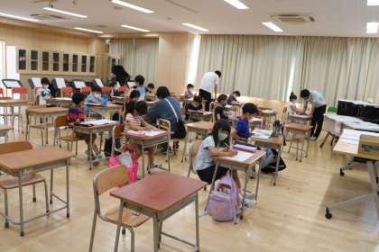 自分で課題プリントを取りに行ったり、先生に丸付けをしてもらったり、しっかり学習しています。