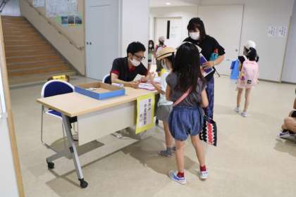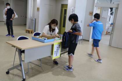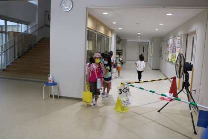 学習相談室の受付には扇風機を置きました。各教室は、喚起をしつつクーラーで冷やしてあります。