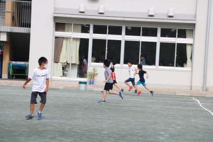 水曜日の朝はロング遊び、低学年は外遊び、高学年は内遊びです。