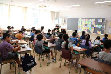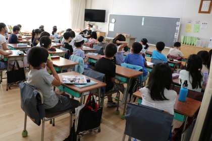 毎週金曜日は放送朝会です。今週の振り返りと、来週の生活目標を看護当番の先生が放送で話します。私は3年生の教室を回って様子を見てきました。どのクラスも静かに放送の話に集中して聞いています。