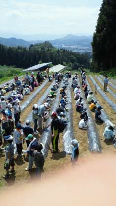 地元の農家の方の指導を受け、さつまいもの苗付けをしました。秋には収穫したおいもを送ってもらいます。