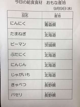 9月9日 今日の給食