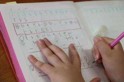 ひっ算のやり方を堂々と答えています。「5ひく8はできないのでとなりから10かりてくる…」手順通りに計算を進めていくことは、まさにプログラミング的思考です。