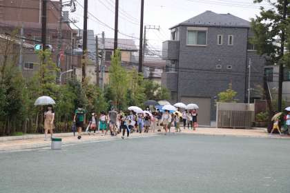 今朝は竹内門で、おやじネットの方といっしょに子どもたちを迎えました。多くの子が「おはようございます」と、気持ちよくあいさつをしてくれます。マスク着用、声は控えめに、という中、会釈をしたり手を振ったり「おはようございます」の気持ちを表現するのは様々です。時には「校長先生、雨の中ありがとう」などと言ってもらえて、幸せです。