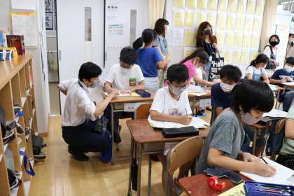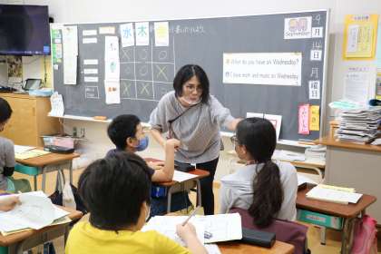 アクティビティーでは、授業を見ていた副校長先生も参加です。副校長先生は英語が堪能で、発音もとてもきれいです。最後にスペルの確認もしました。
