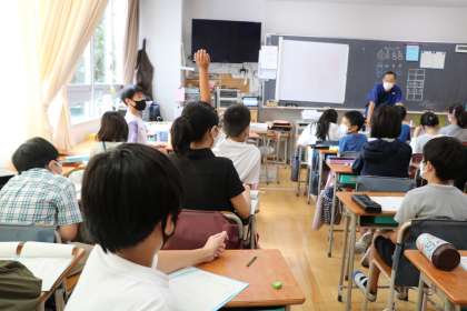 6年生教室では、交流活動に向けて見通しを持ち、計画を立てたり、配慮すべき点を確認したりしています。交流活動とは今までは、6年生が班長となり1〜5年生全員がそろった6〜7人のグループでの活動でした。今年度は1・6年生、2・5年生、3・4年生で班を作り活動します。