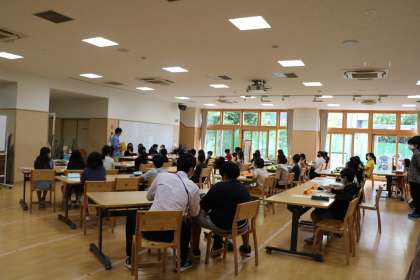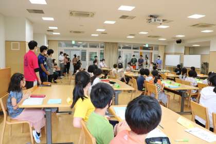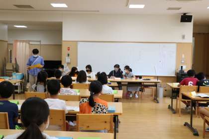 多目的室での代表委員会は、「スポーツフェスタで他学年を応援し盛り上げる工夫を考えよう」という議題で話し合いをしています。今年度は感染症予防を考え学年ごとのスポーツフェスタとなるので、より楽しいスポーツフェスタにするためにできることを考えています。各委員の委員長、各学級の計画委員が集まって学校をよりよくしていく代表委員会です。他学年の先生方も代表委員会の様子を見守ってくれています。