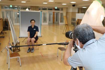 最後に担任の先生も。自然な笑顔を引き出すのが上手なカメラマンさんです。さすがプロ!!あら、せっかくのいい笑顔。ピントがカメラマンさんに合ってしまった写真で失礼しました