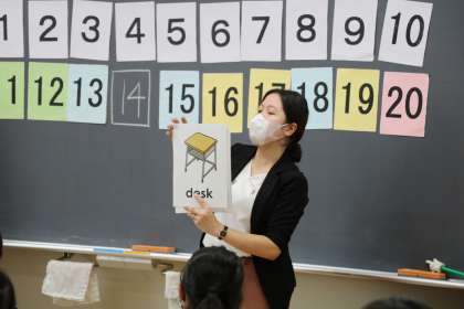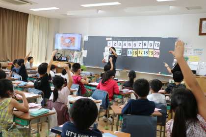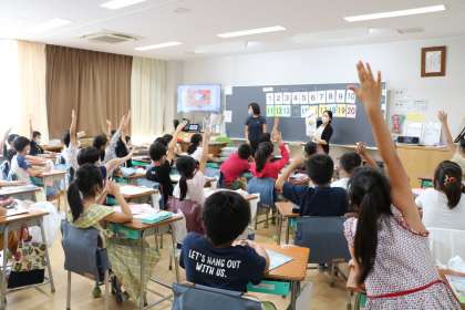楽しそうな英語の声が聞こえてきます。ヒントゲームに「はい!わかった!」というのも子どもたちは「 I know ! I know ! 」と言って手をあげます。