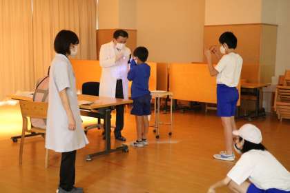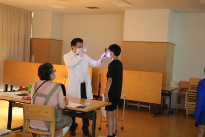 今日は全学年の眼科検診です。1日かかって全員検診していただきます。