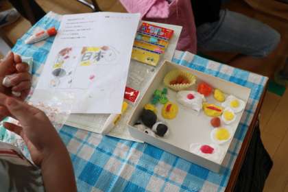 これらの作品は、先生が作った見本ではありません。2年生の子どもたちが作った作品です。色付けや形づくりなど、どれも丁寧に作ってあります。