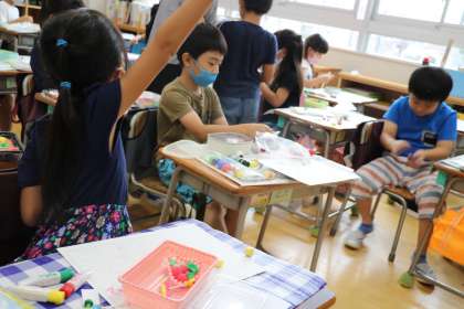 「みんなでピクニック」の作品です。紙粘土で設計図を見ながら作ります。