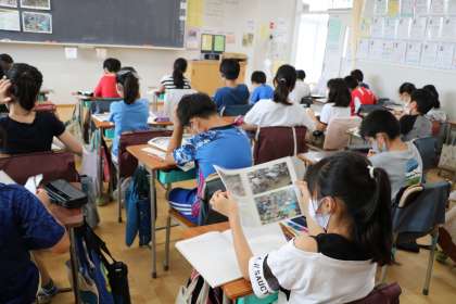 「大震災で死者を減らすために誰がどのようにしているのだろう?」という学習課題を前の時間にもちました。今日は大震災が起きたときやそれに関連する写真や実際家庭で行っている対策などをヒントに、どうやってその学習課題を解決しようか計画を立てます。