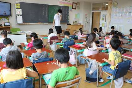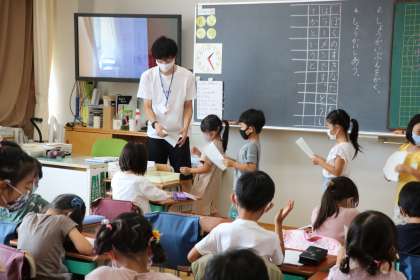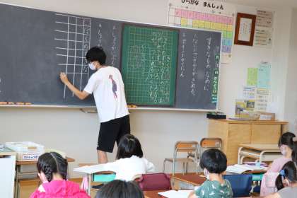 「すきなもの、なあに」の学習の様子です。前の時間に考えた自分の好き○○から、今日の題材を選びます。今日はそれの好きな理由をつけて文章にし、友達に聞いてもらいます。好きなもの1つ決めたら、文章を書き先生にチェックしてもらいます。