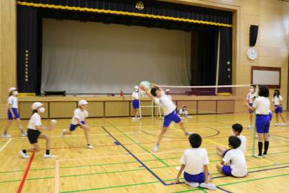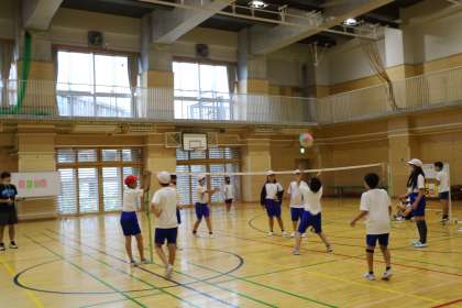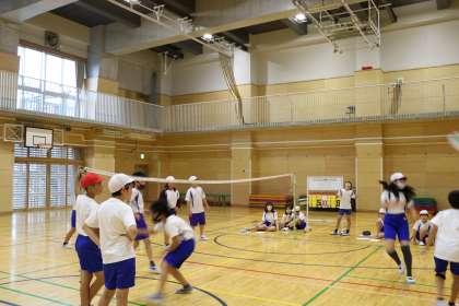 ソフトバレーボールでは、4人対4人で試合をしたり、審判をしたりしているところです。