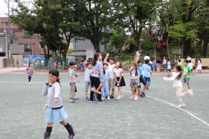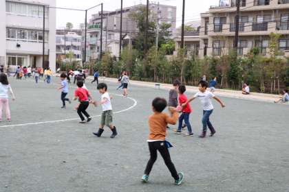 ちょうど雨が降っていない時間の休み時間です。校庭、2グラ共、乾きの早いグリーンダストなので多少の雨が降っても、回復が早く遊べるのが嬉しいです。