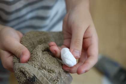 ザラザラ感を出すために、雑巾で包んで跡をつける工夫も!