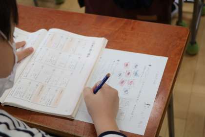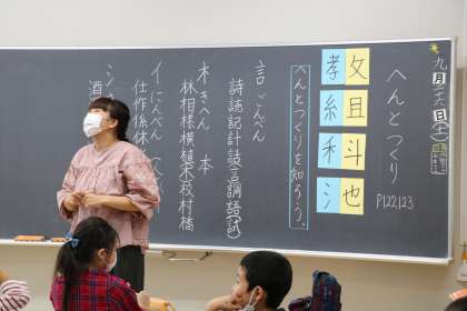 隣のクラスも「へんとつくり」の学習です。今まで学習した漢字、友達の名前の漢字を一生懸命探しながらプリントに書き出しています。