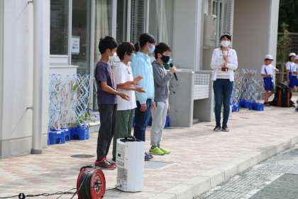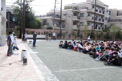出発式が始まりました。4年生が砧公園に校外学習に出かけます。班で協力する。楽しく安全に遊ぶ。ルールやマナーを守る。砧公園を知る。4つのめあてをもって楽しい1日を過ごしてきます!