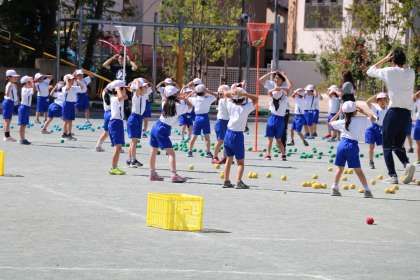 スポーツフェスタ(運動会)が今年度は開催できず、替わって学年ごとの取り組みになります。1年生は初めての行事なので、競技についてのルール確認や隊形移動なども練習をしています。