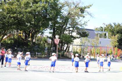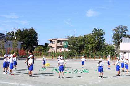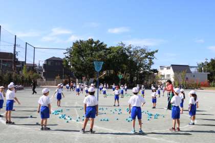 5色の玉入れに挑戦の様子です。各色A・Bチームに分かれて玉入れをします。