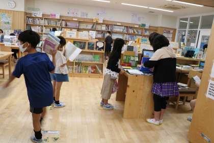 水曜日B時程の中休みは、10分しかないので過ごし方も様々です。図書室では、図書委員会の高学年が本の貸し出し・返却の仕事をしっかり行っています。音楽室ではリコーダーの特訓を受ける子もいます。