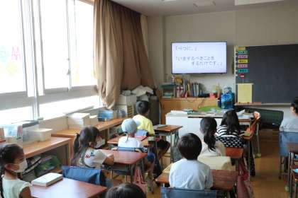 6年生と1年生の交流活動を例にとり、6年生は最高学年として、1年生にできる限りのことを集中して考え準備し、とても充実した活動とすることができました。また一つ6年生は自分たちの力を伸ばしました。