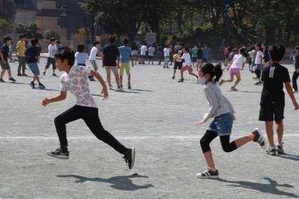 中休み時間の校庭の様子です。気温が上がってきて、かなり暑くなってきました。教室を回るとクーラーをつけたり消したりしながら、快適な室温になっています。