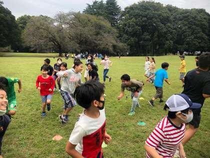 写真は、震源地、長縄、はないちもんめで遊ぶ様子です。