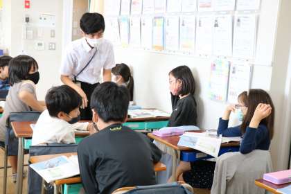 「近くの人と意見を交換しよう」と担任が声をかけると、すぐに体の向きを変えて話し合いの体制が取れます。