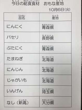 10月6日 今日の給食
